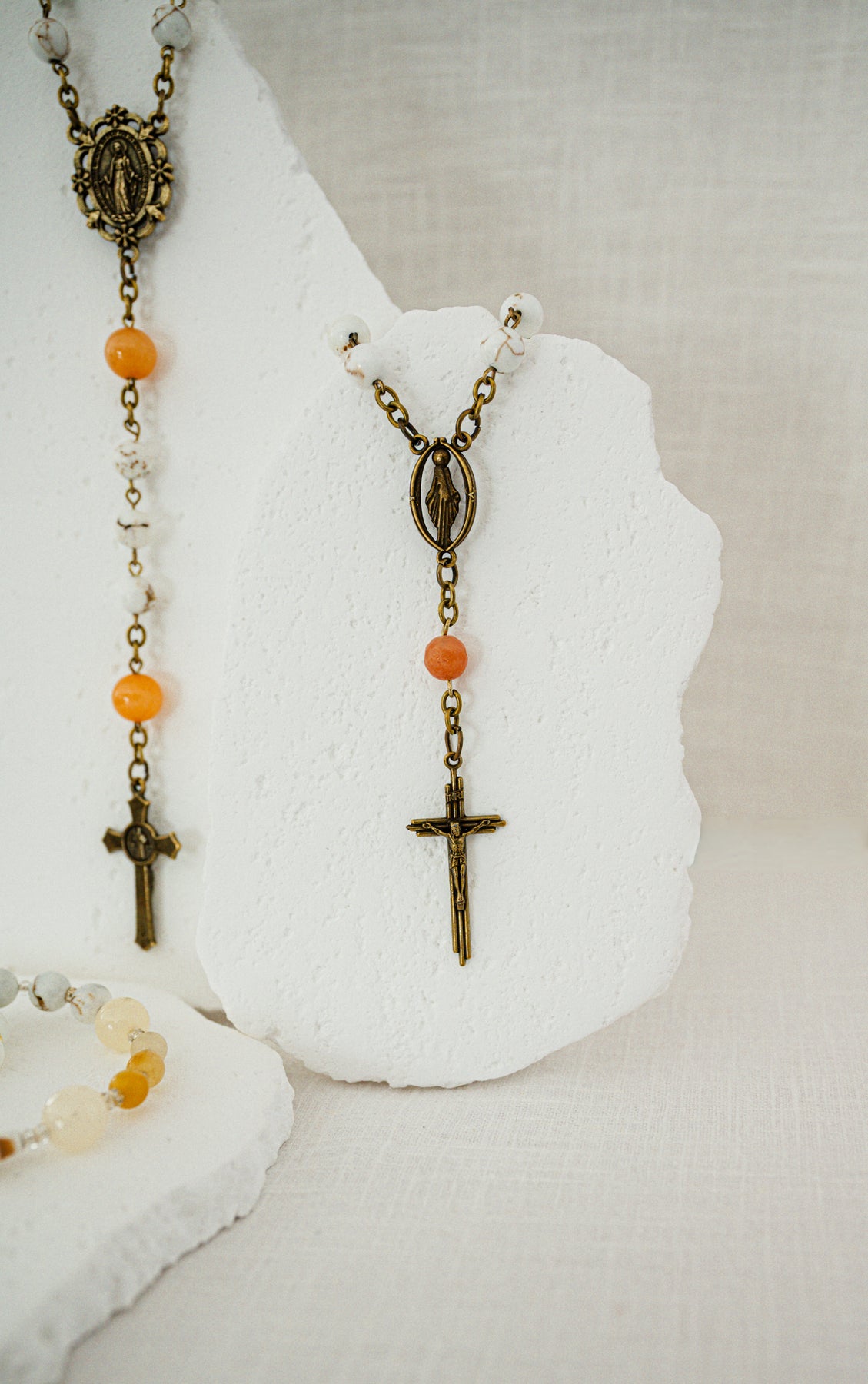 A perfect companion to your rosary, this handcrafted charm lets you carry your faith wherever you go. Designed with gemstones and inspired by the beauty of grace, each charm can be clipped to your bag—so your rosary, and your love for Jesus, are always close at hand.
