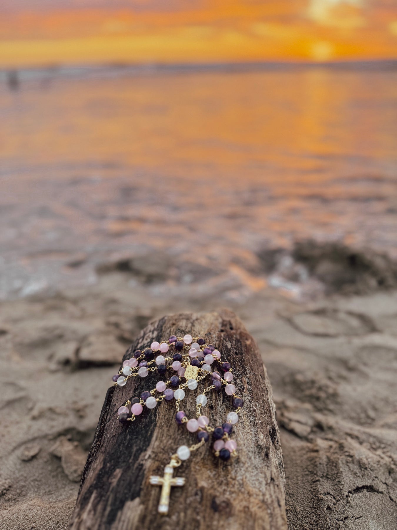 Purple beads symbolize hope, repentance, and the promise of Christ’s light.